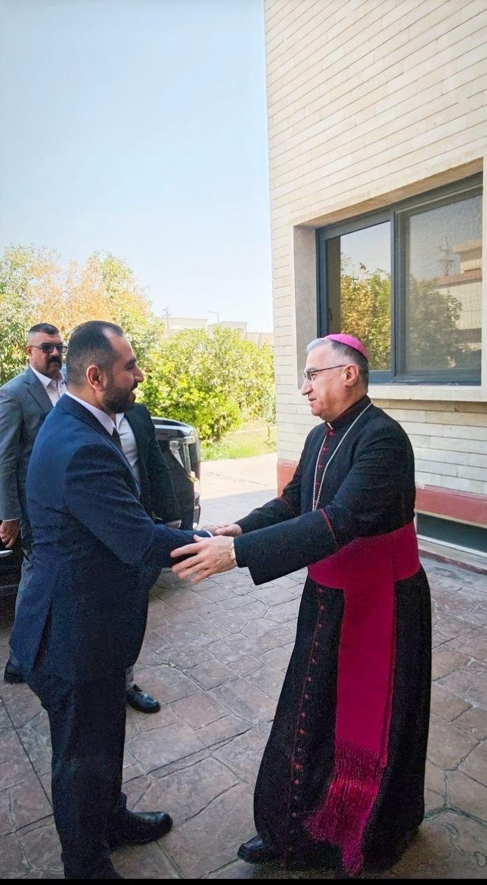 استقبل معالي رئيس الديوان، الدكتور رامي جوزيف آغاجان، نيافة المطران مار بشار وردة، رئيس أساقفة الكلدان في أربيل، لبحث مخرجات مؤتمري الجامعة الكاثوليكية حول تعزيز الحماية القانونية للمسيحيين في العراق.