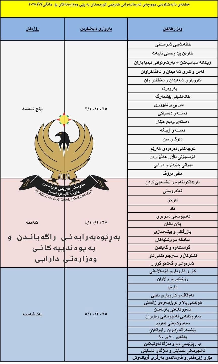 مالية الإقليم تعلن صرف رواتب موظفي كردستان غداً الخميس